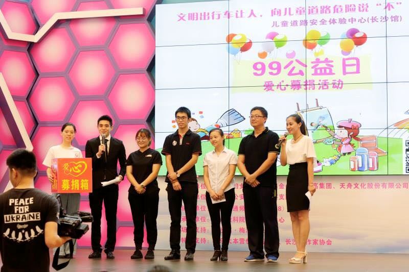 此次爱心捐赠活动分为两部分:一是线上众筹,7-9日三天通过腾讯公益官方平台进行募捐;二是线下活动,即“99公益日”当天的落地公益活动。此次落地活动,现场人气颇高,互动热烈,来自壹号娱乐心理中心的专业教师与长沙市交警支队的4名交警为孩子们带去交通安全主题的互动游戏与现场教学,儿童道路安全体验中心(长沙馆)还组织开展了交通知识竞答赛以及亲子安全闯关等多项交通安全体验活动。湖南交通频道(FM91.8)全程直播,多家媒体同步报道。湖南省妇女儿童发展基金会副理事长兼秘书长周萍参加活动并讲话。